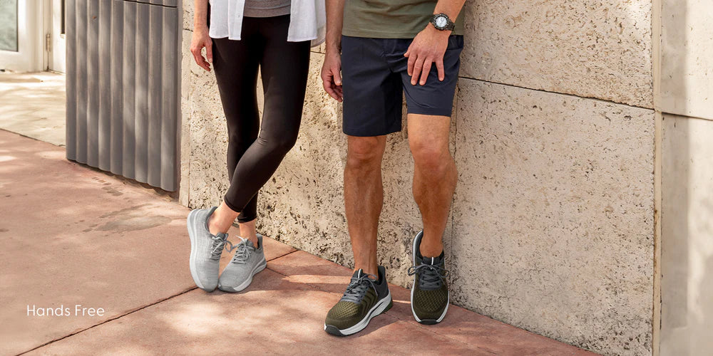 Gjør det enkelt å ta av og på skoene uten å bruke hendene. Fjerner behovet for å bøye seg og knyte lissene. Perfekt for folk på farten, inkludert de med knesmerter, ryggsmerter eller leddgikt. Den revolusjonerende hældesignen hindrer skoene fra å skli av uventet under gange eller løping.